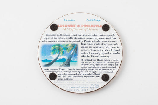 Coconut & Pineapple Hawaiian Quilt Design Cork Coaster (Single)