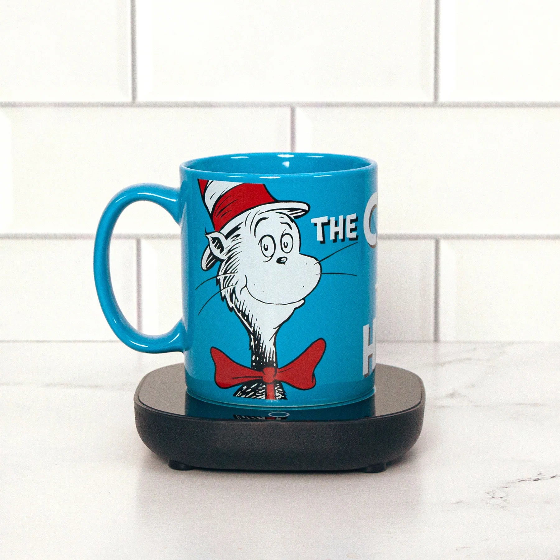 Introducing the Dr. Seuss Cat in the Hat Mug Warmer set – a delightful way to enjoy your favorite beverages while keeping them warm! This charming set features iconic Cat in the Hat art on both the warming plate and the 12oz ceramic mug, making your tea, coffee, or hot cocoa extra special. Perfect for adding a touch of whimsy to your break time. Sip in style and stay cozy with the Cat in the Hat!