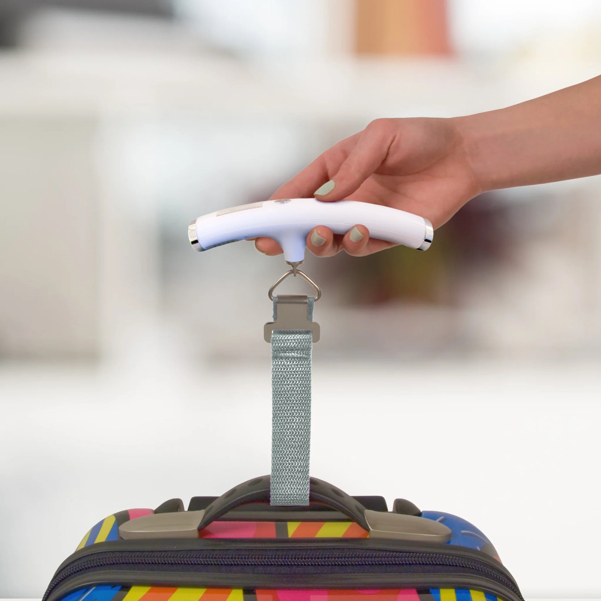 Never pay overweight bag fees again! This high quality luggage scale features easy, 1-button operation, stainless steel clasp, and a tough nylon strap. Available in 2 eye catching colors!