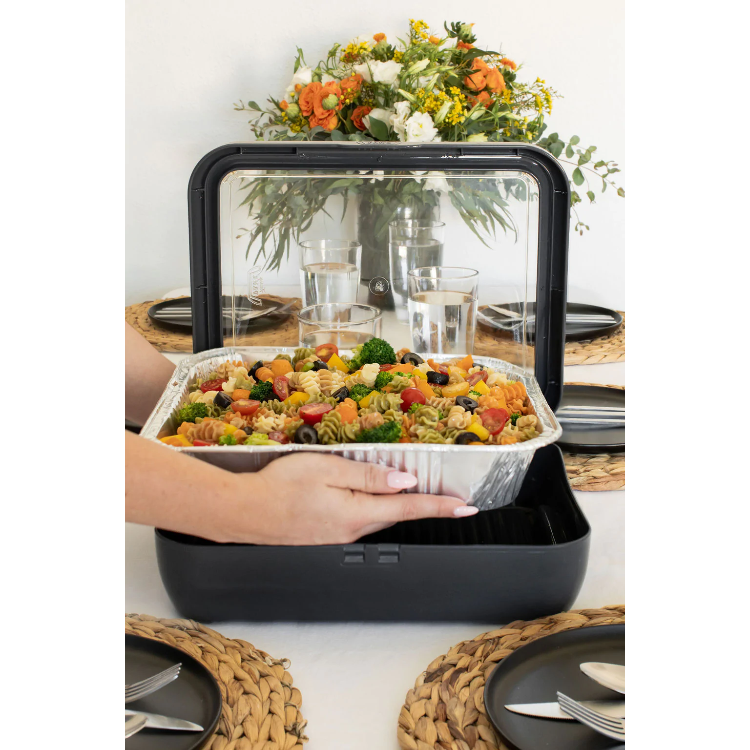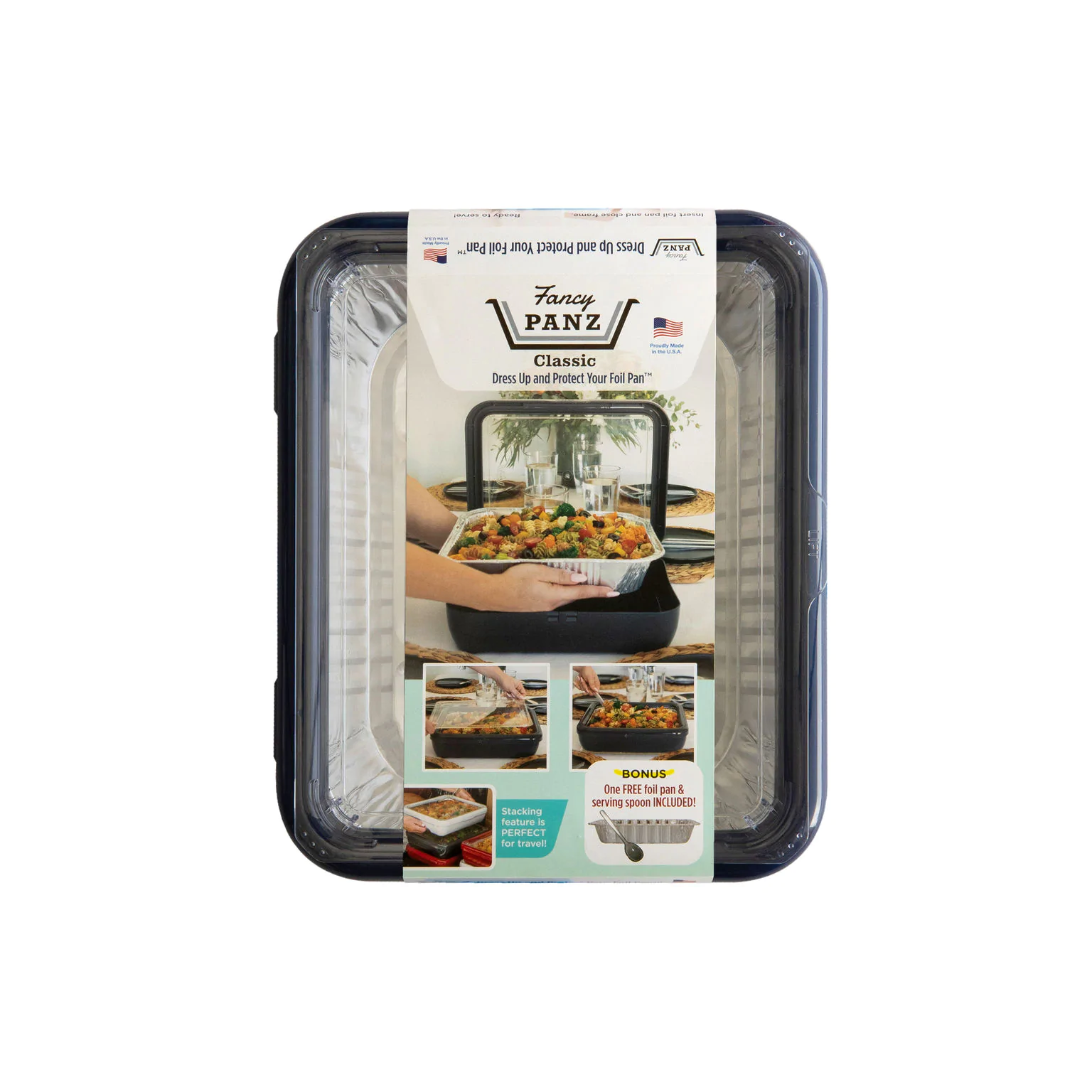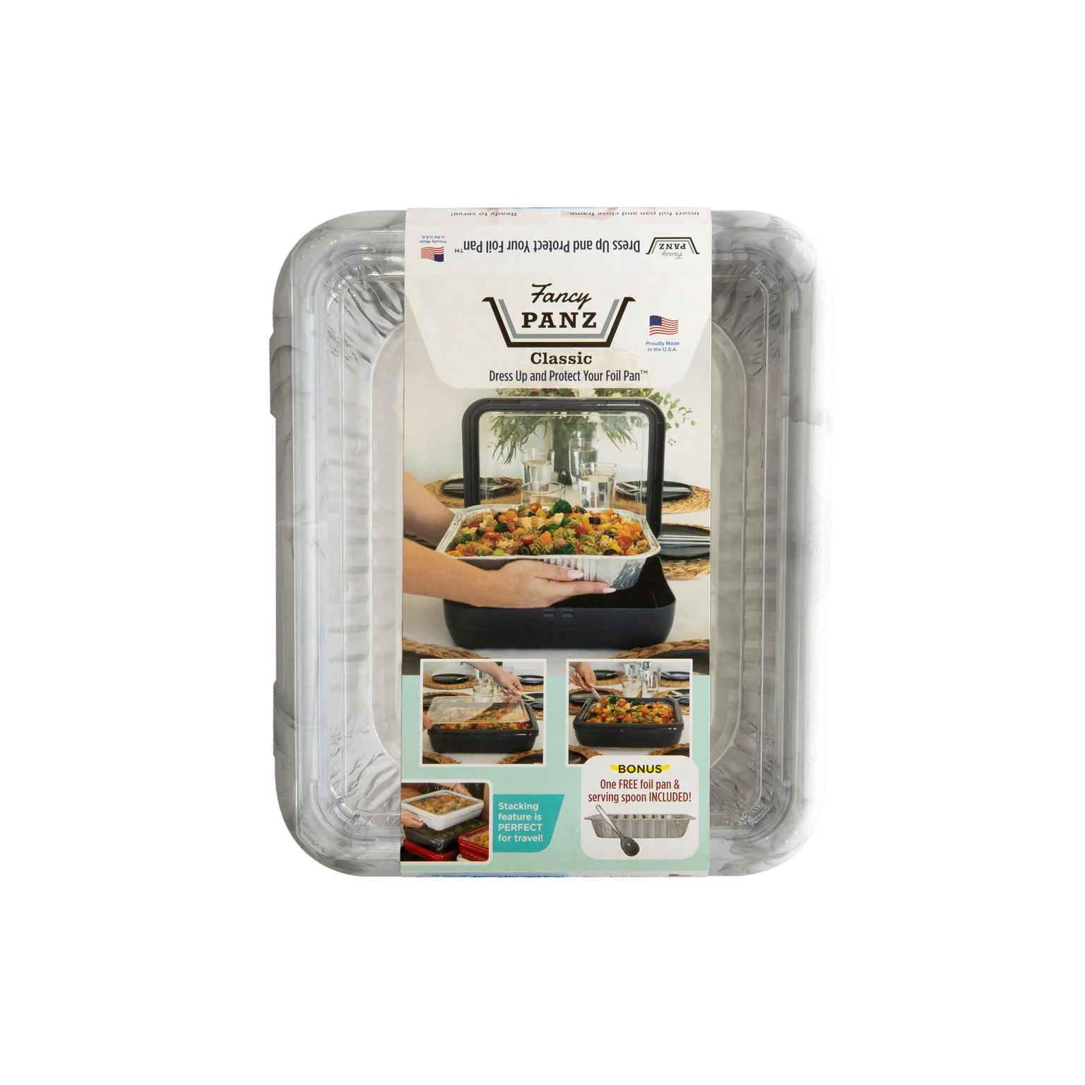 Enjoy all the conveniences of a foil pan and dress it up in a Fancy Panz Premium! No more grimy pans to scrub or dirty serving dish to bring home- just remove the foil pan and wipe down your Fancy Panz!