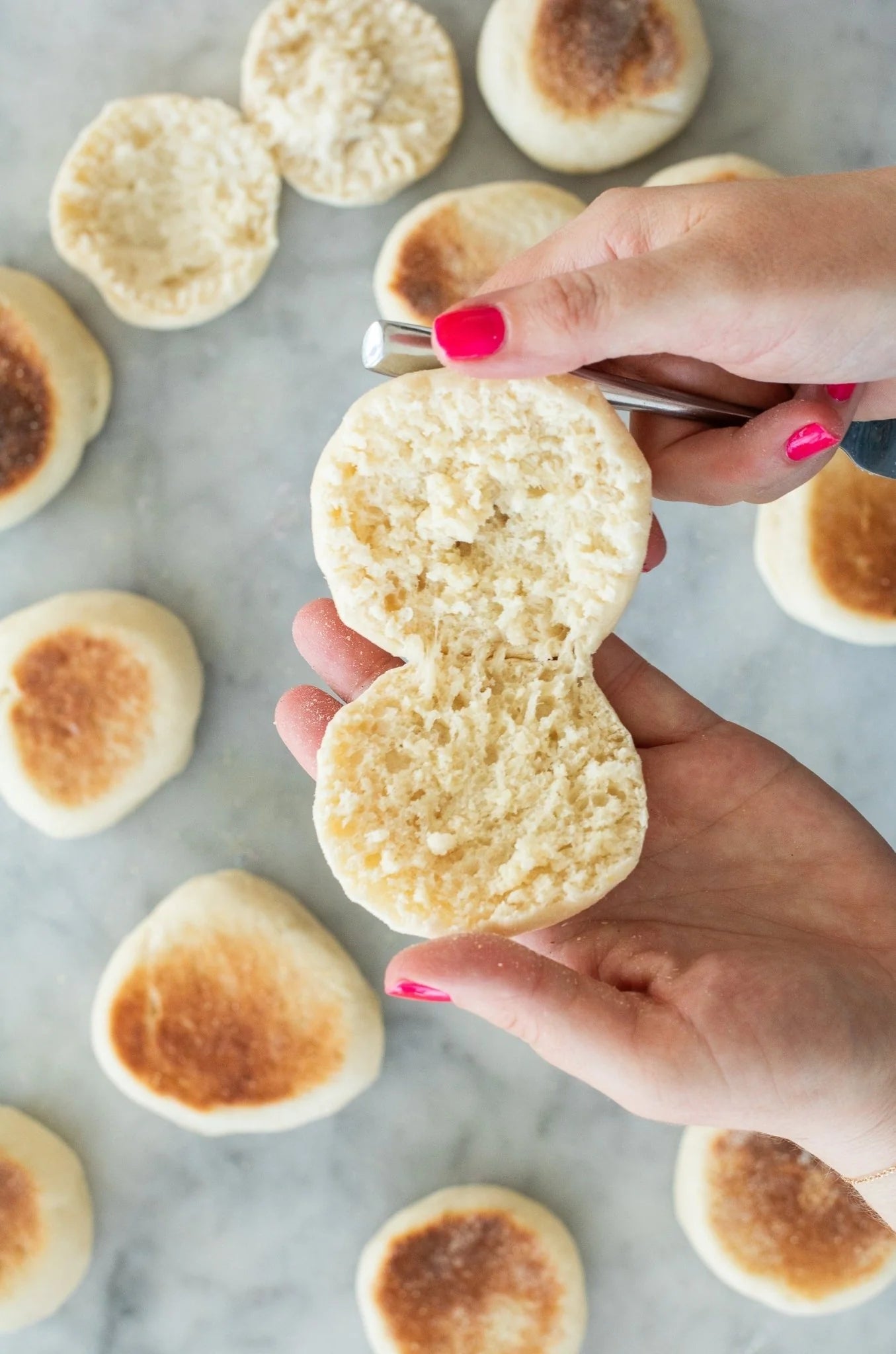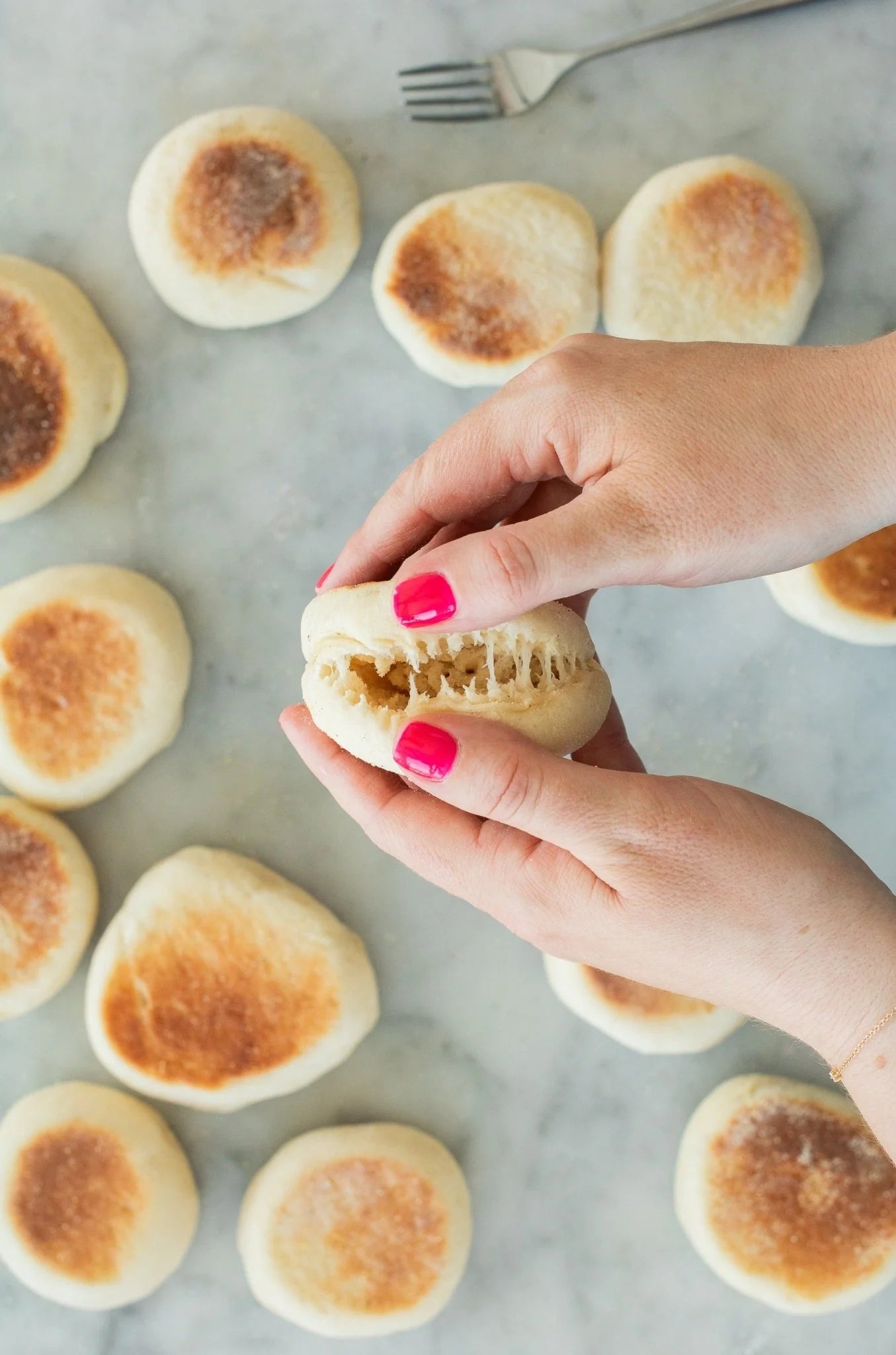 Fork-split and fresh from a hot griddle, making homemade English muffins is easier than you might expect. Soft, warm, and rich with delicious nooks and crannies—perfect for filling with your favorite jam or buttery spread—these English muffins will elevate any breakfast.