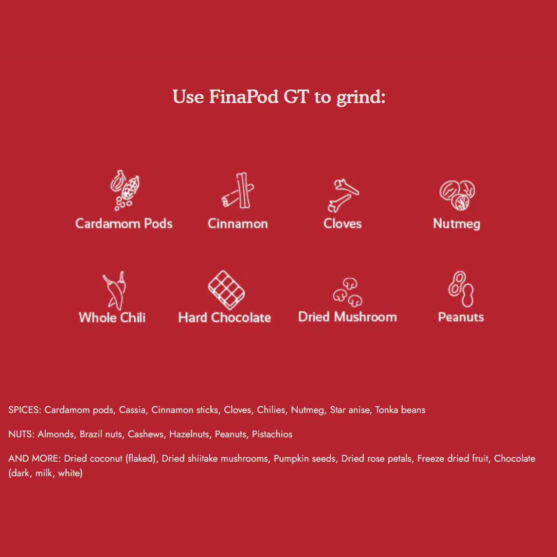 - FinaPod GT to grate extra-hard spices like nutmeg