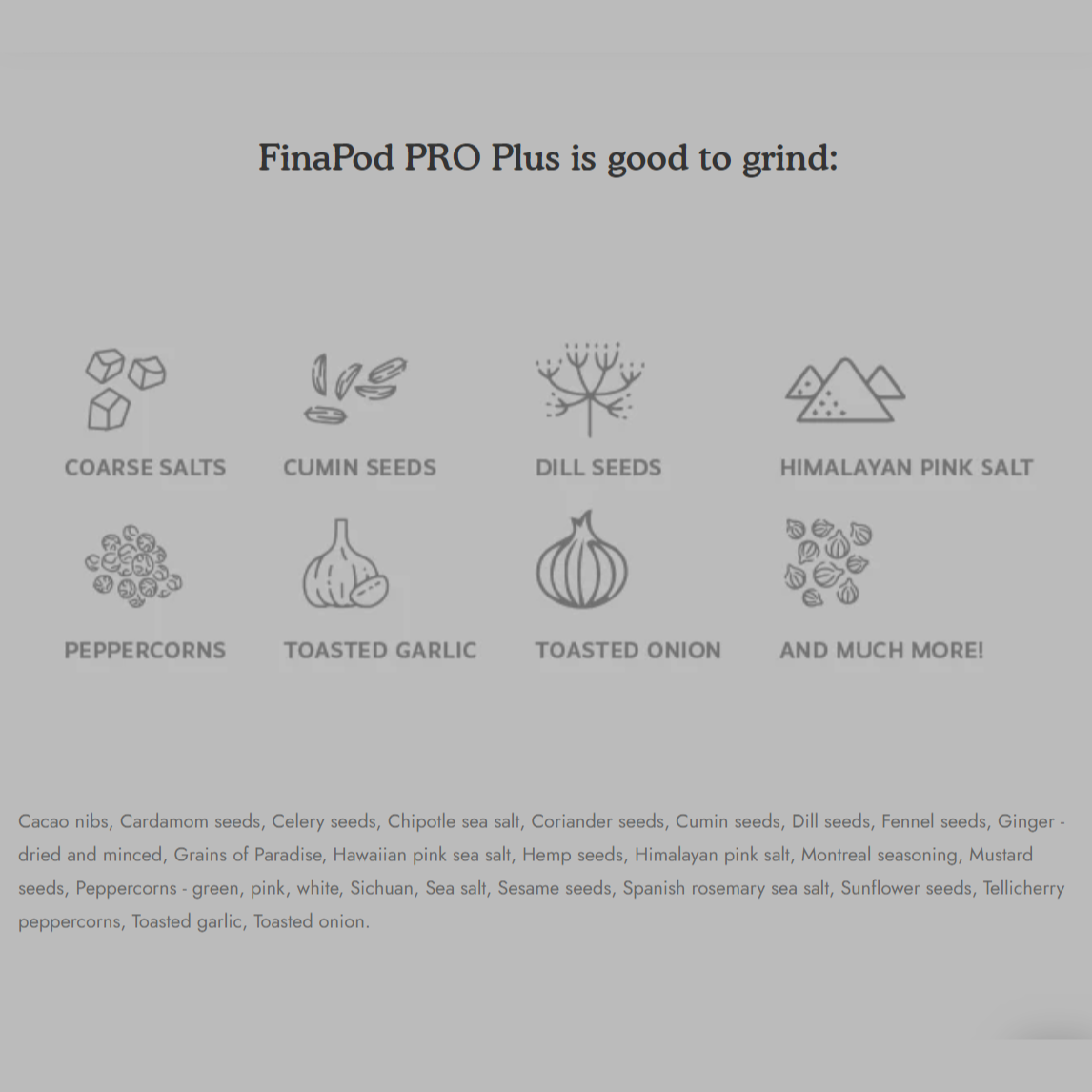 - FinaPod Pro Plus for everyday spices,