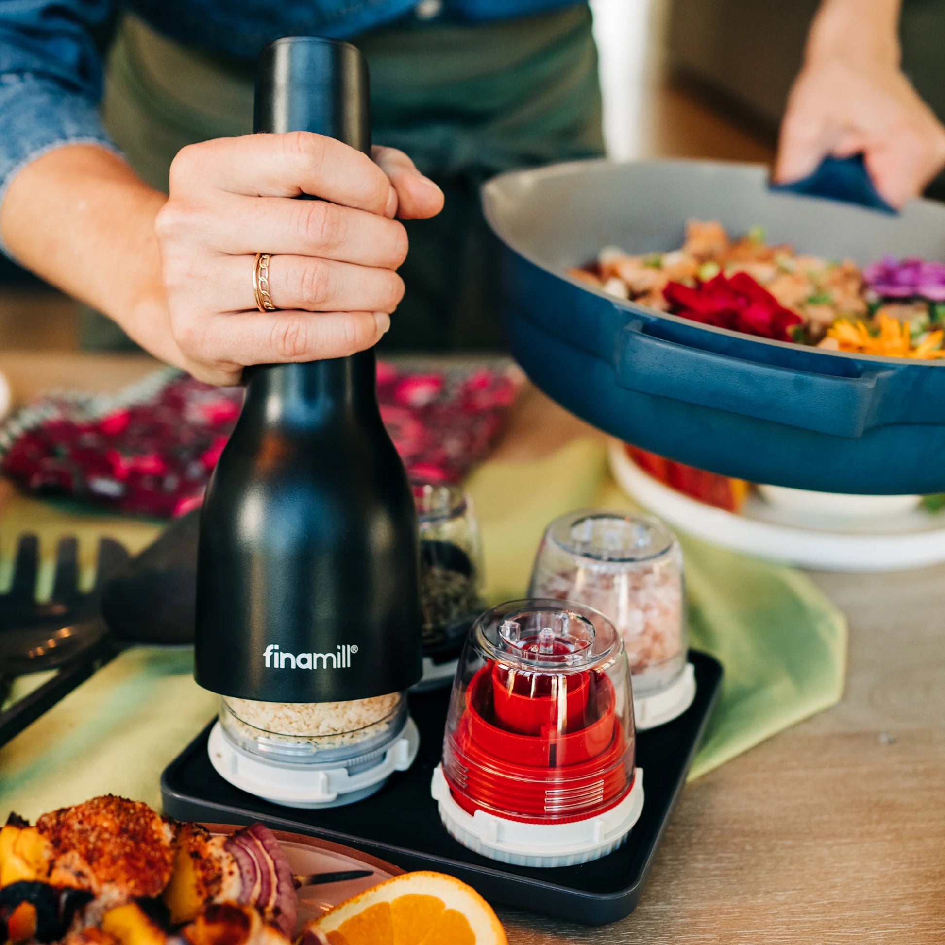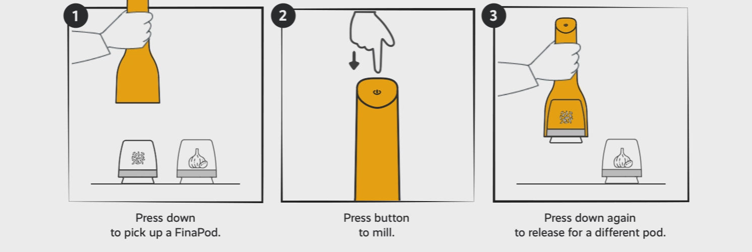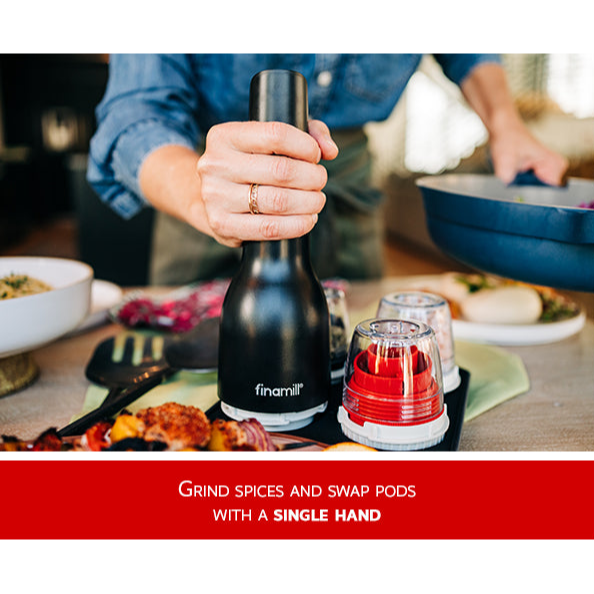 Discover fresh ground flavor with FinaMill, the easiest way to grind whole spices and dried herbs. This ultimate collection for spice lovers, featuring our USB rechargeable FinaMill spice grinder and full set of swappable grinding pods, along with an organizer tray.