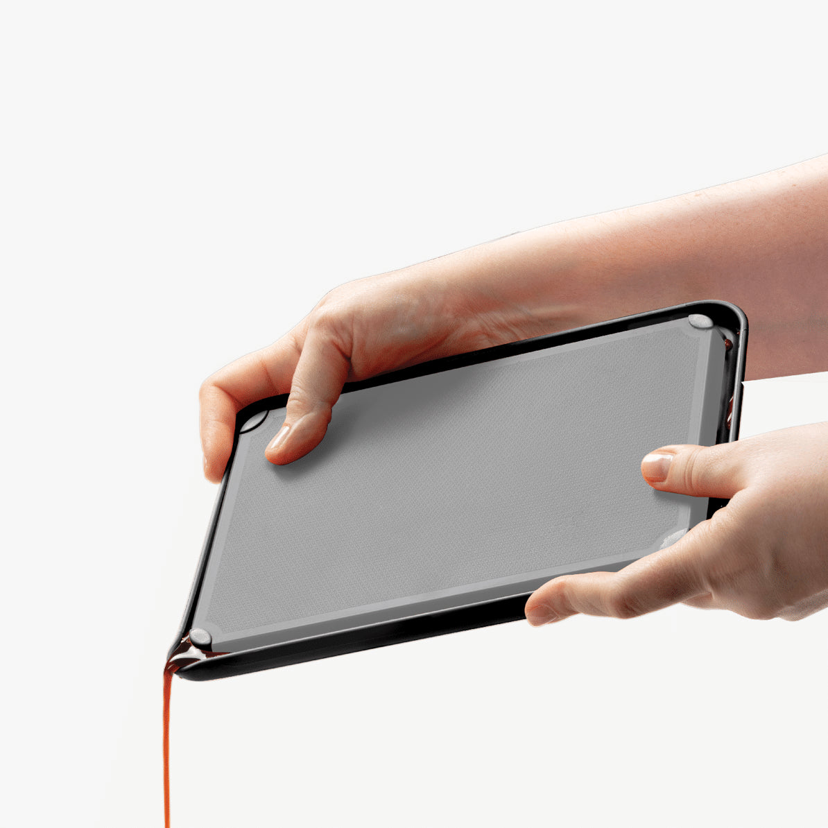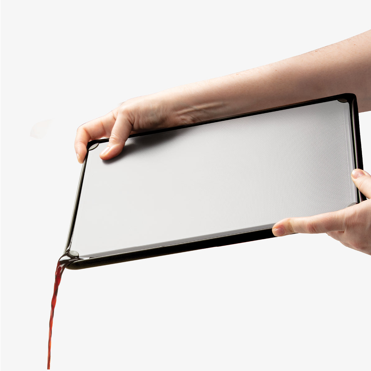 Fledge has flexible edges that flip up to turn it into a tray and stop food falling off the sides, which makes it perfect for transporting food or serving.