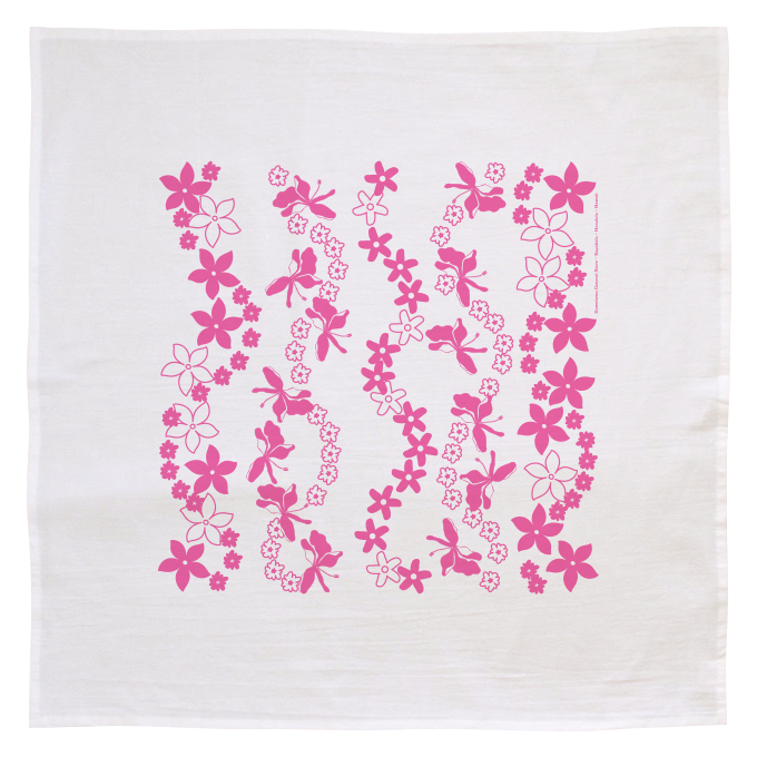 Flour Sack Kitchen Towel - Pink Lei (Made in Hawai'i)