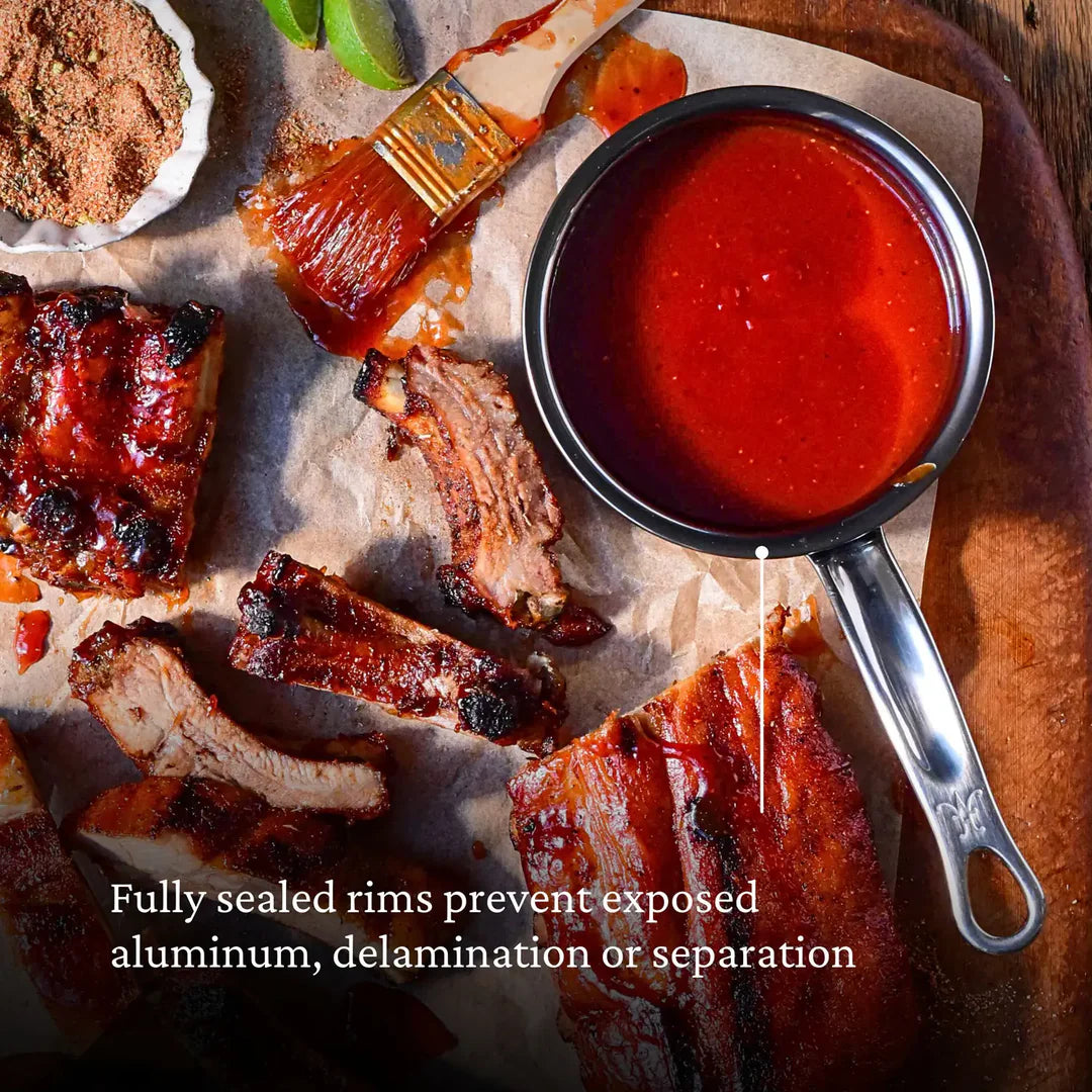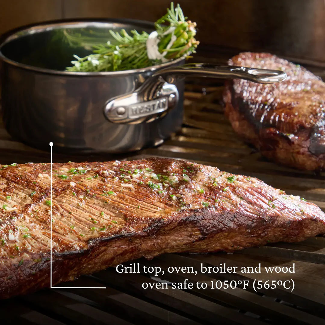- HIGH HEAT TOLERANT - Induction compatible stainless steel sauce-making pan and lid are oven, broiler and grill safe to a scorching 1050°F.