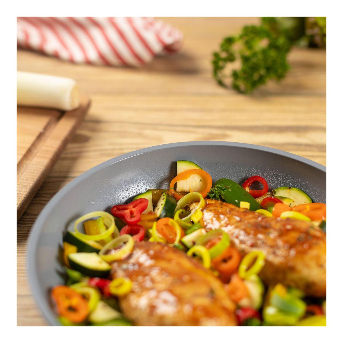 - The frying pan is ideal for easy frying of vegetables, meat (beef, pig, veal, chicken, minced and cut), meals with egg and potato of all kinds