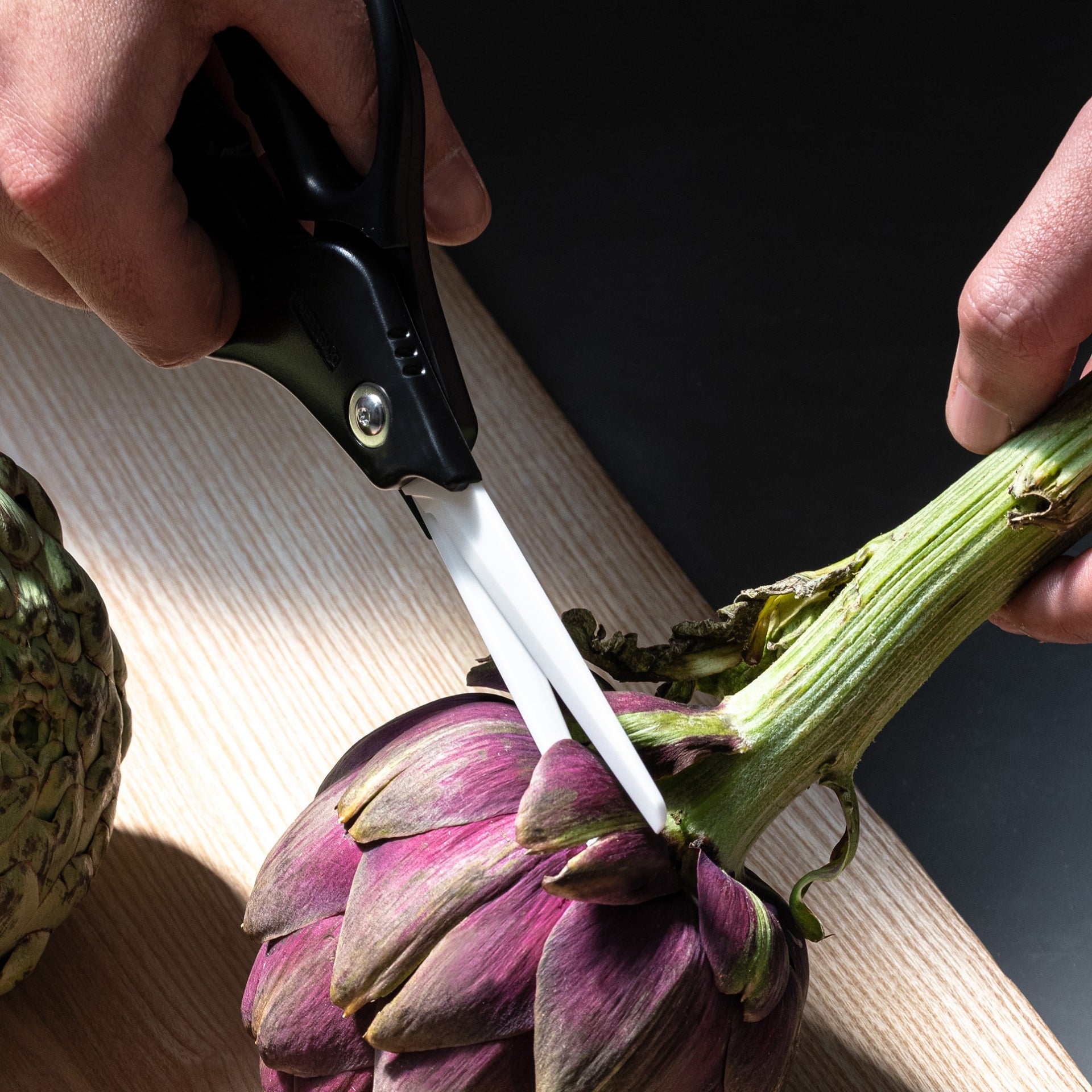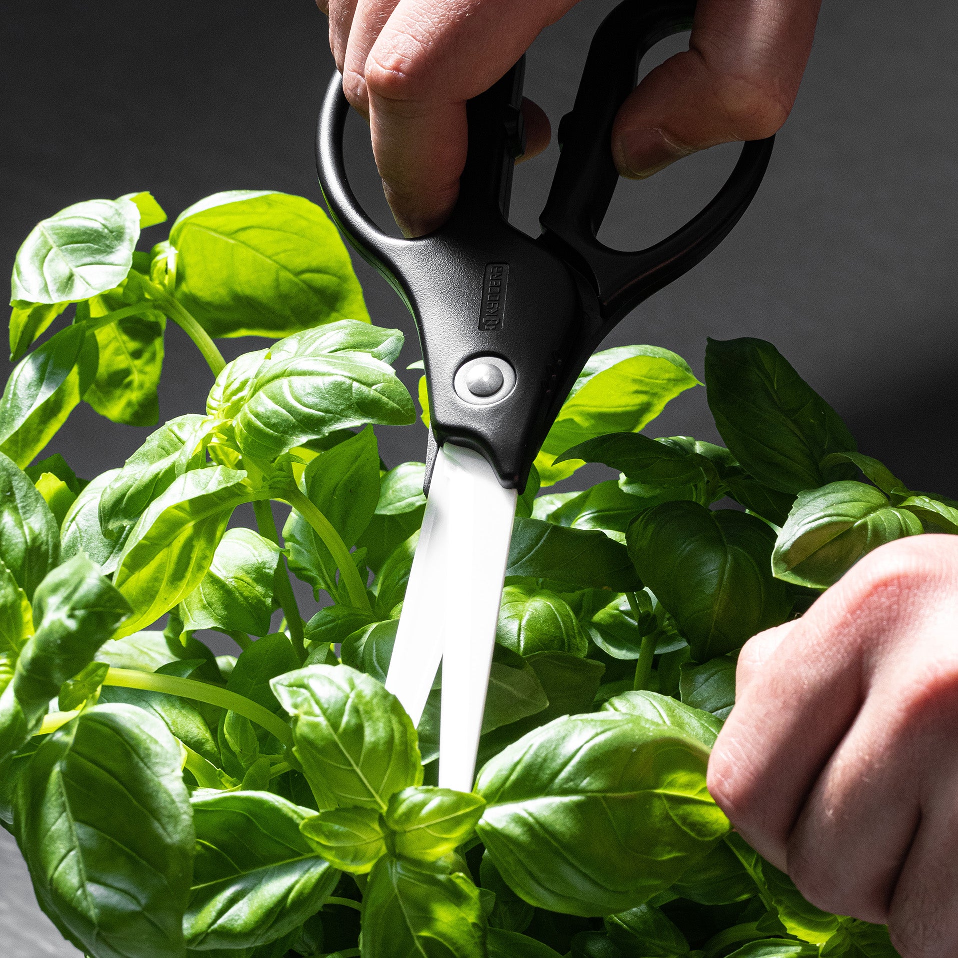 Kyocera’s multi-purpose ceramic scissors are rust-proof, lightweight, non-conductive and easy to clean. The ceramic 2.7" blades deliver long-lasting sharpness and are precisely aligned to achieve clean, straight cuts, are non-reactive and will keep foods or herbs fresher longer. Especially suited for a variety of applications in moisture-prone environments including the kitchen, garden, and outdoors.