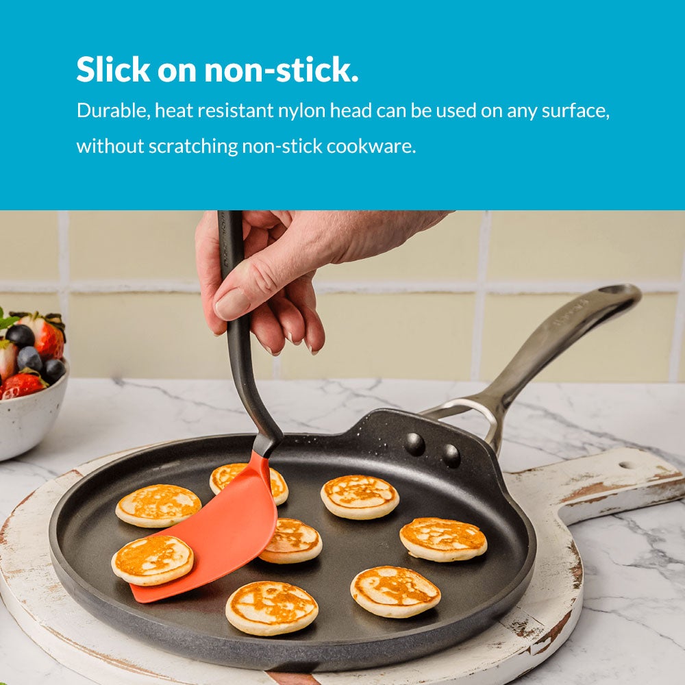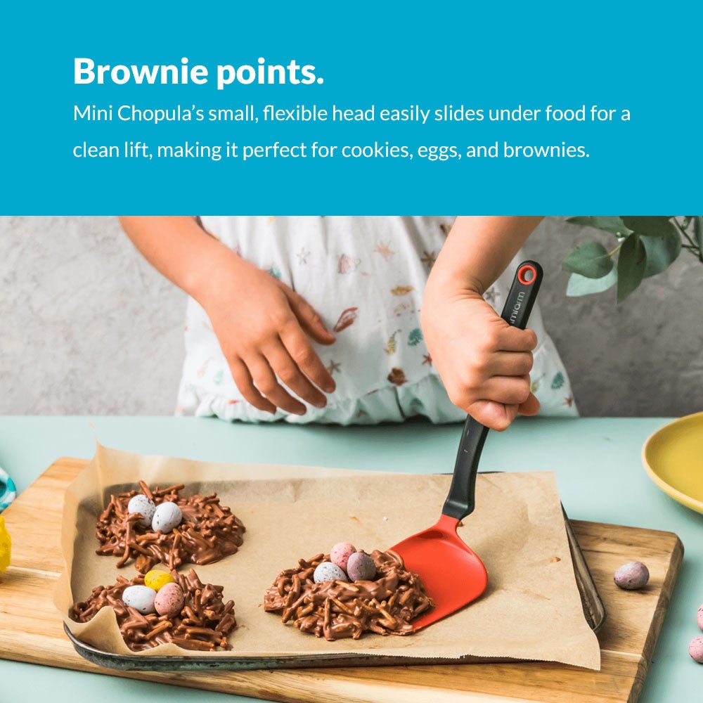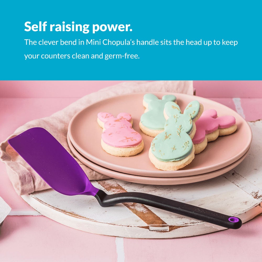 Chopula is an award-winning spatula that is not only thin and flexible for flipping from the front, but also incredibly strong for chopping on its side. Great for separating minced meat or eggs in a pan, flipping pancakes and serving. Chopula’s clever handle design also lifts its head up off your kitchen bench when you put it down.