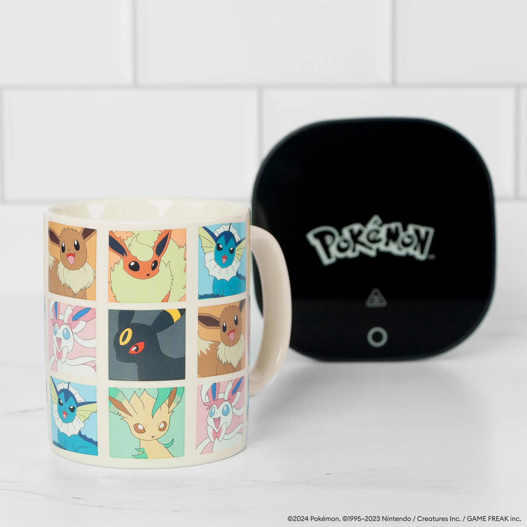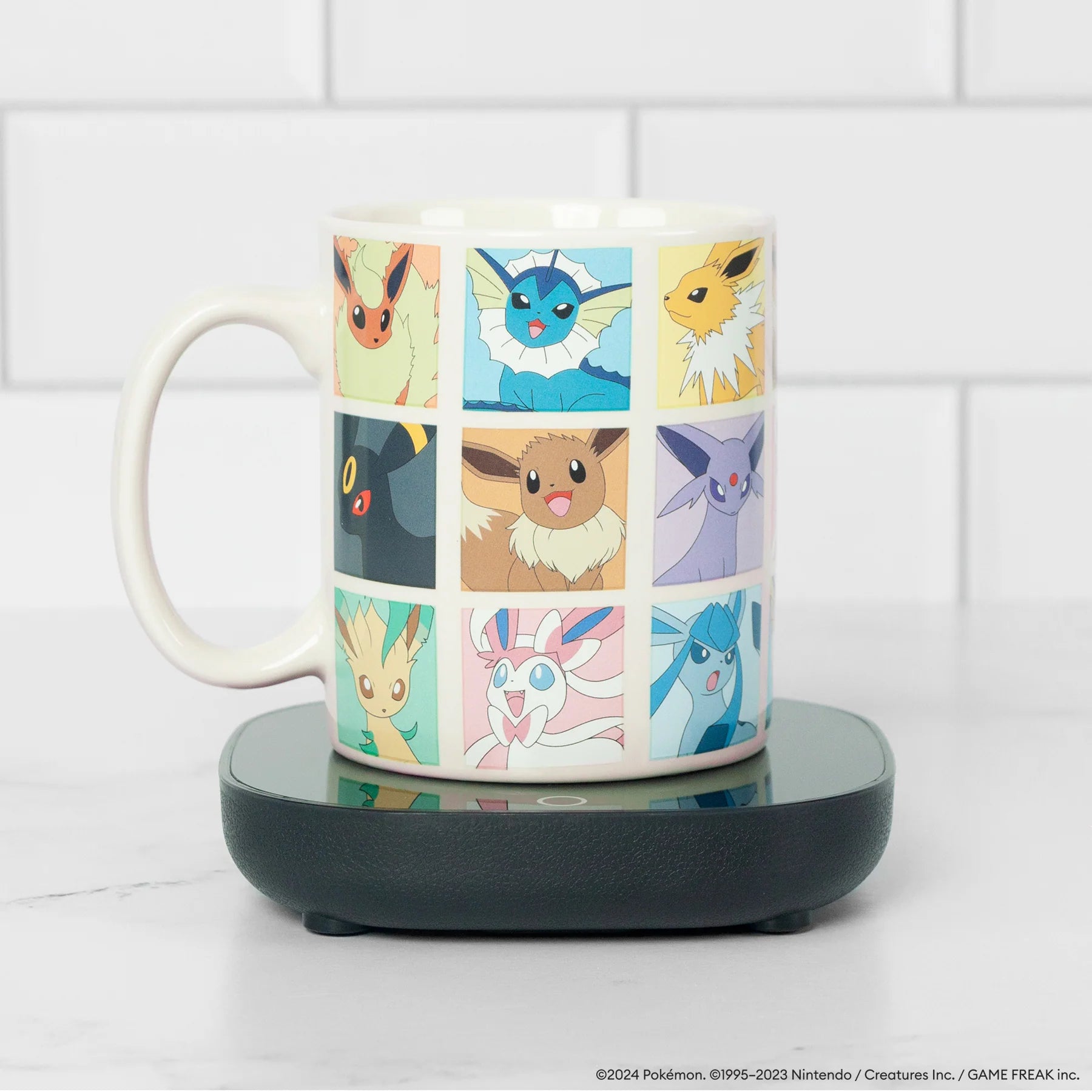 Why start your morning with just one Eeveelution when you can have them all? This mug warmer set features Eevee surrounded by colorful panels showcasing Vaporeon, Flareon, Sylveon, and the rest of its evolutions. Whether you're sipping your morning coffee, tea, or hot cocoa, this 12oz mug is sure to delight Pokémon trainers of all ages. Gotta catch 'em all...one sip at a time!