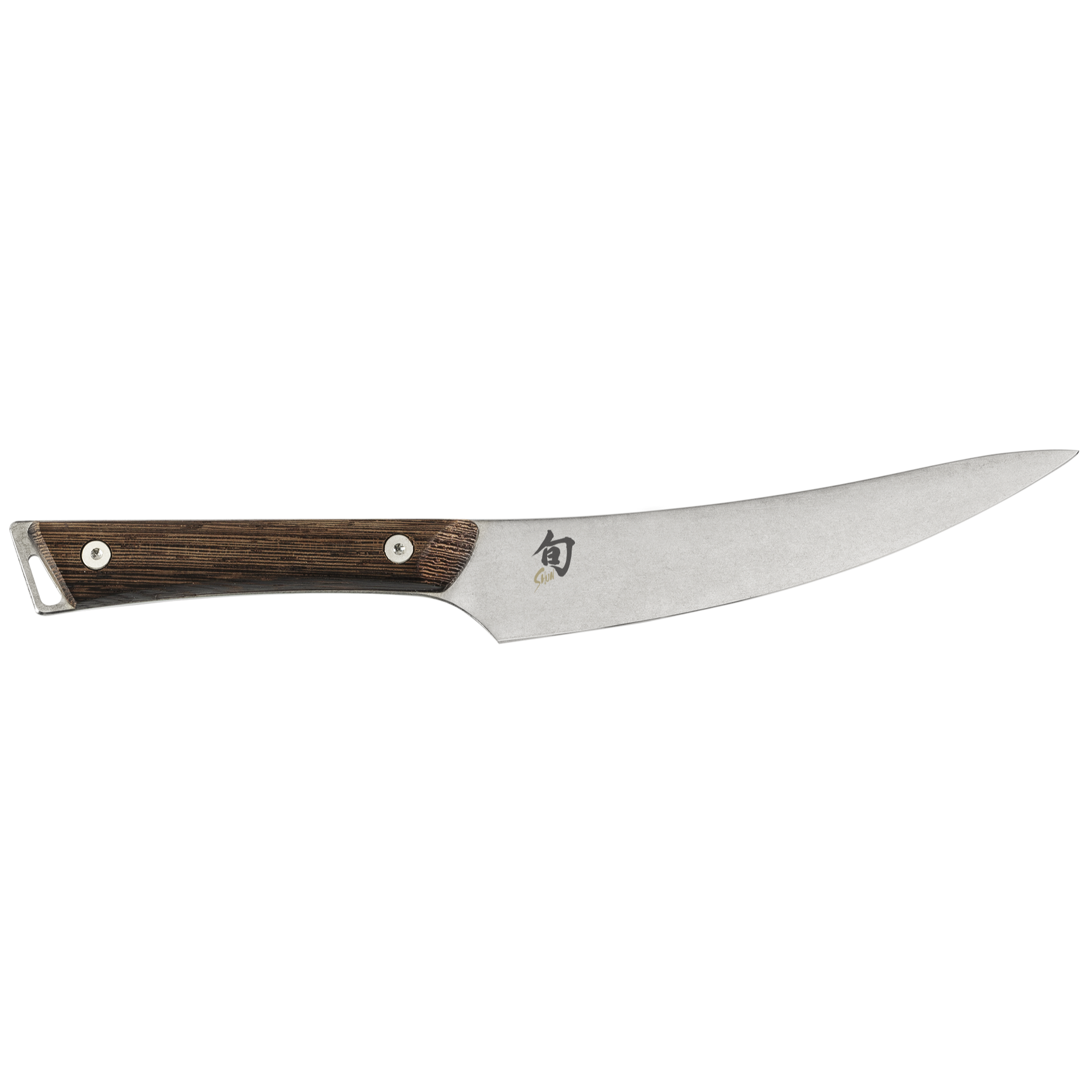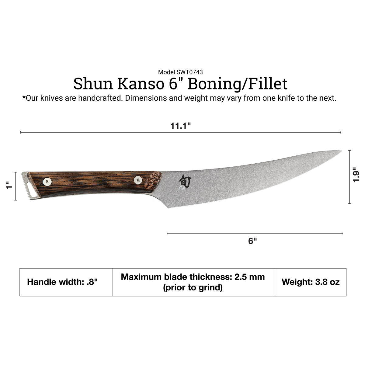 The Shun Kanso Boning/Fillet Knife is a rigid knife with a razor-sharp edge. For boning, the narrow, curved blade gets in close to the bone. Even fibrous tissue is no match for Shun's extremely sharp edge. It's perfect for trimming the silver skin from a tenderloin or making your own cutlets. When it comes to filleting fish, the blade's length is just right to glide through the fish, quickly removing bones and skin for a perfect fillet. The contoured tagayasan handle provides a secure grip for excellent control.