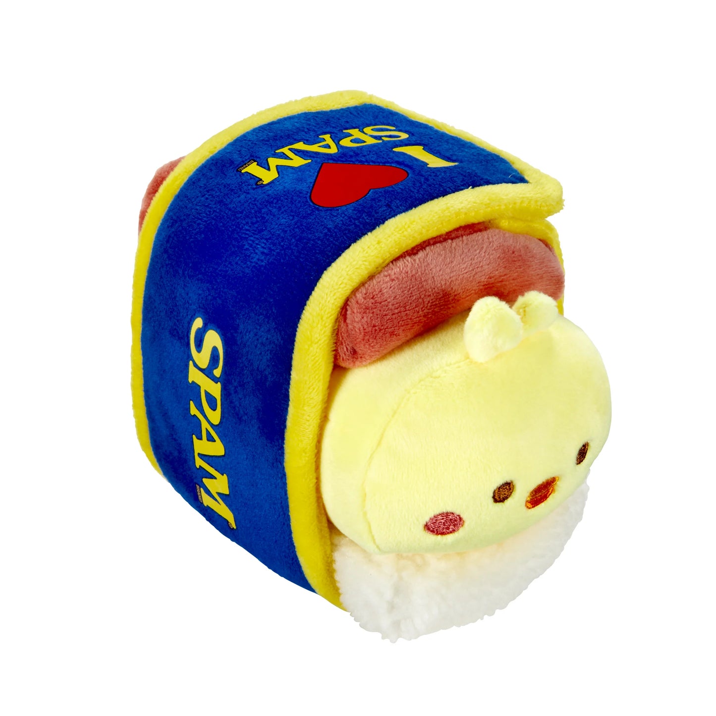 Add a touch of character to your SPAM® brand collection with a large musubi chick roll. This colorful, soft plush musubi roll with a yellow chick features a love SPAM® logo around the roll. The roll comes apart with velcro and each plush piece is removable. Measures approximately 6.5" x 4.5".