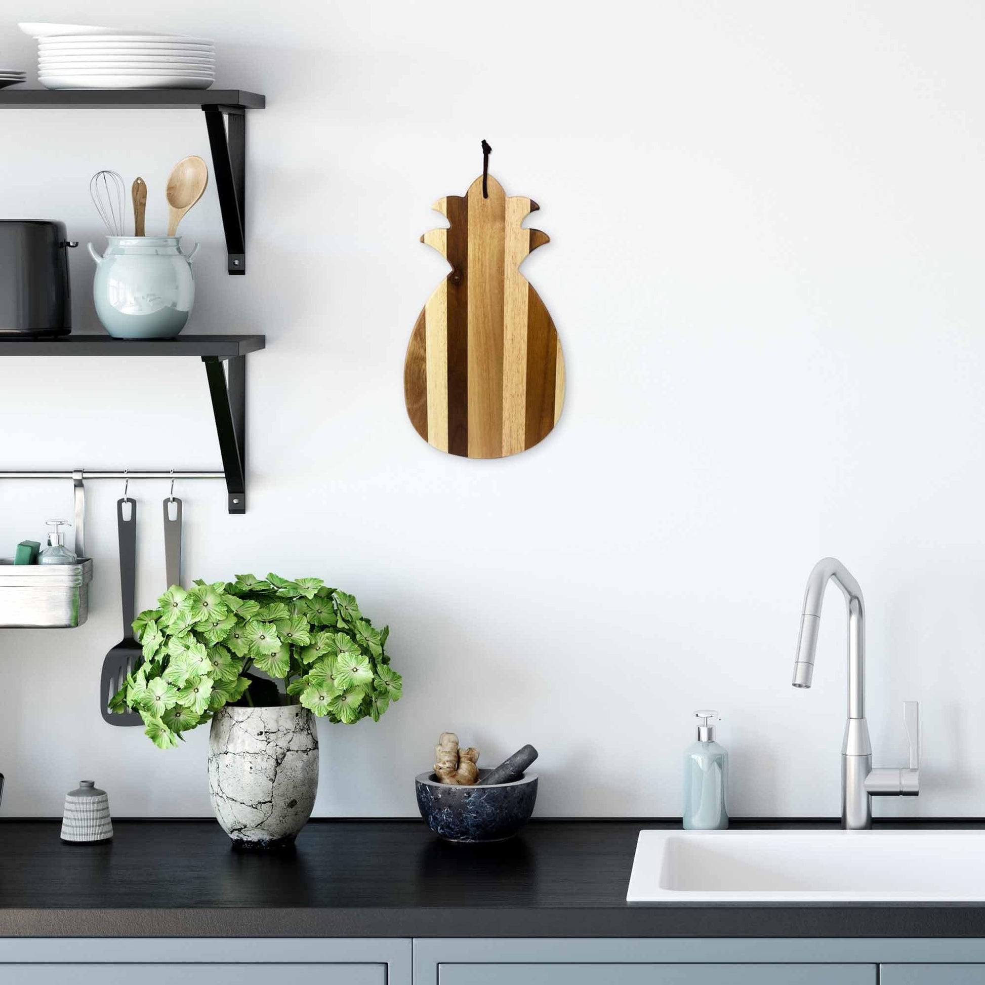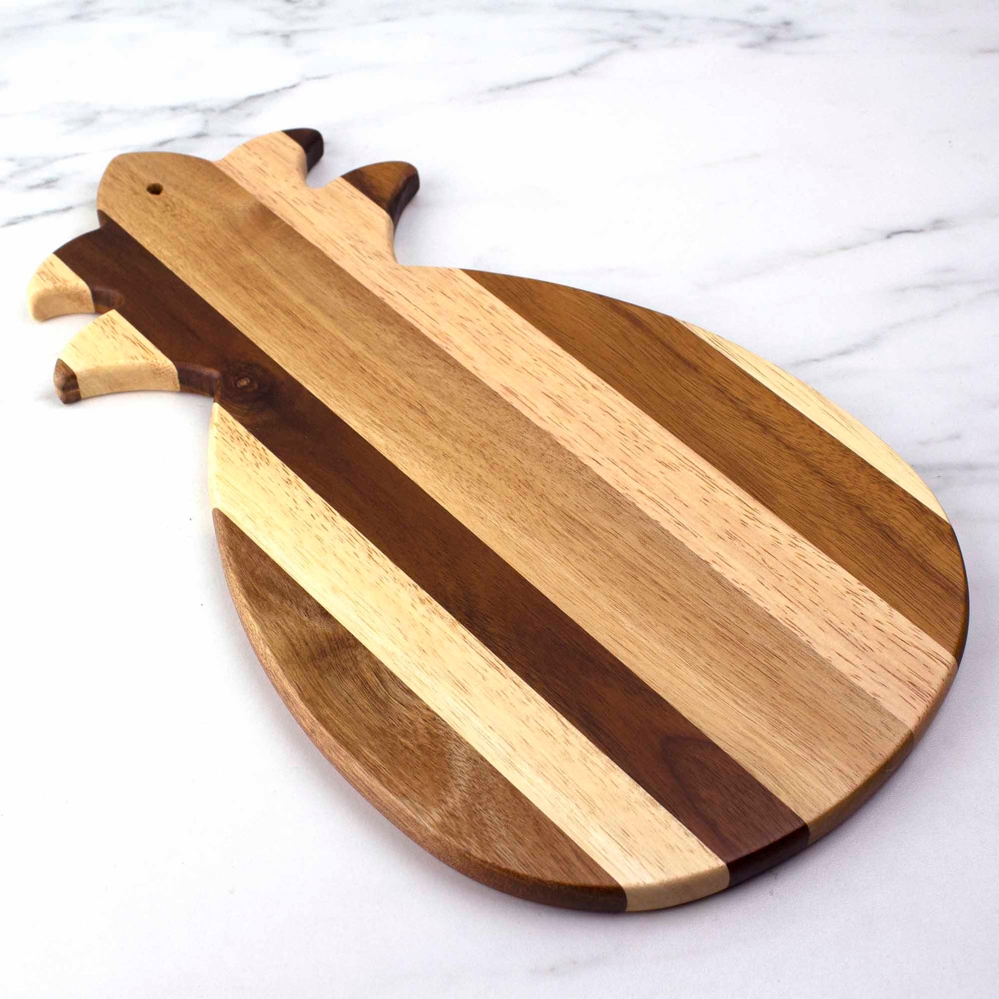 Add a touch of tropical style to your home with our Rock & Branch® Shiplap Series Pineapple Shaped Cutting Board! Masterfully crafted from a variety of wood plank colors for a distinctive “shiplap” appearance, this board is shaped to the unmistakable outline of a pineapple. It’s perfect for slicing fruits and veggies or piling high with meats, cheeses and crackers for guests. When not in use, the included hang tie allows it to double as wall art. It also makes for a great gift!
