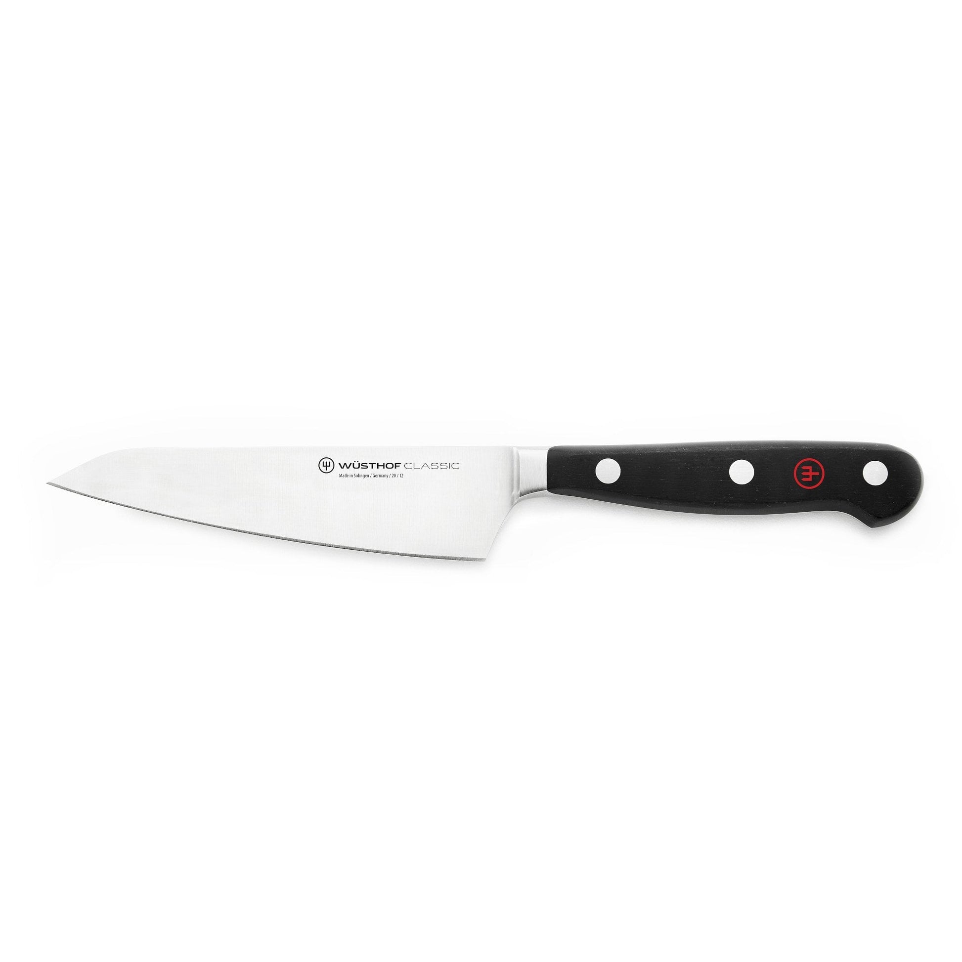 The Asian Utility Knife features a uniquely curved straight edge blade, which allows it to be used as both a mini chef's knife and as a paring knife. The knife is perfectly designed for both low rock cuts that require moderate heft and precise balance, and closer hand work that demands a razor-sharp edge and exceptional agility. The ideal size and shape for countless food prep tasks, the Asian Utility Knife performs effortlessly when cutting, slicing, or dicing a variety of ingredients, including small- and medium-sized fruits, vegetables, and cheeses. It can also be used to trim meats and poultry.