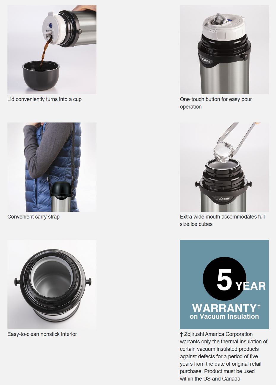 The Stainless Bottle features high quality vacuum insulation to keep your beverages hot or cold for hours. The convenient one-touch button stopper and cup lid allow you to let your beverage cool to the temperature of your preference.