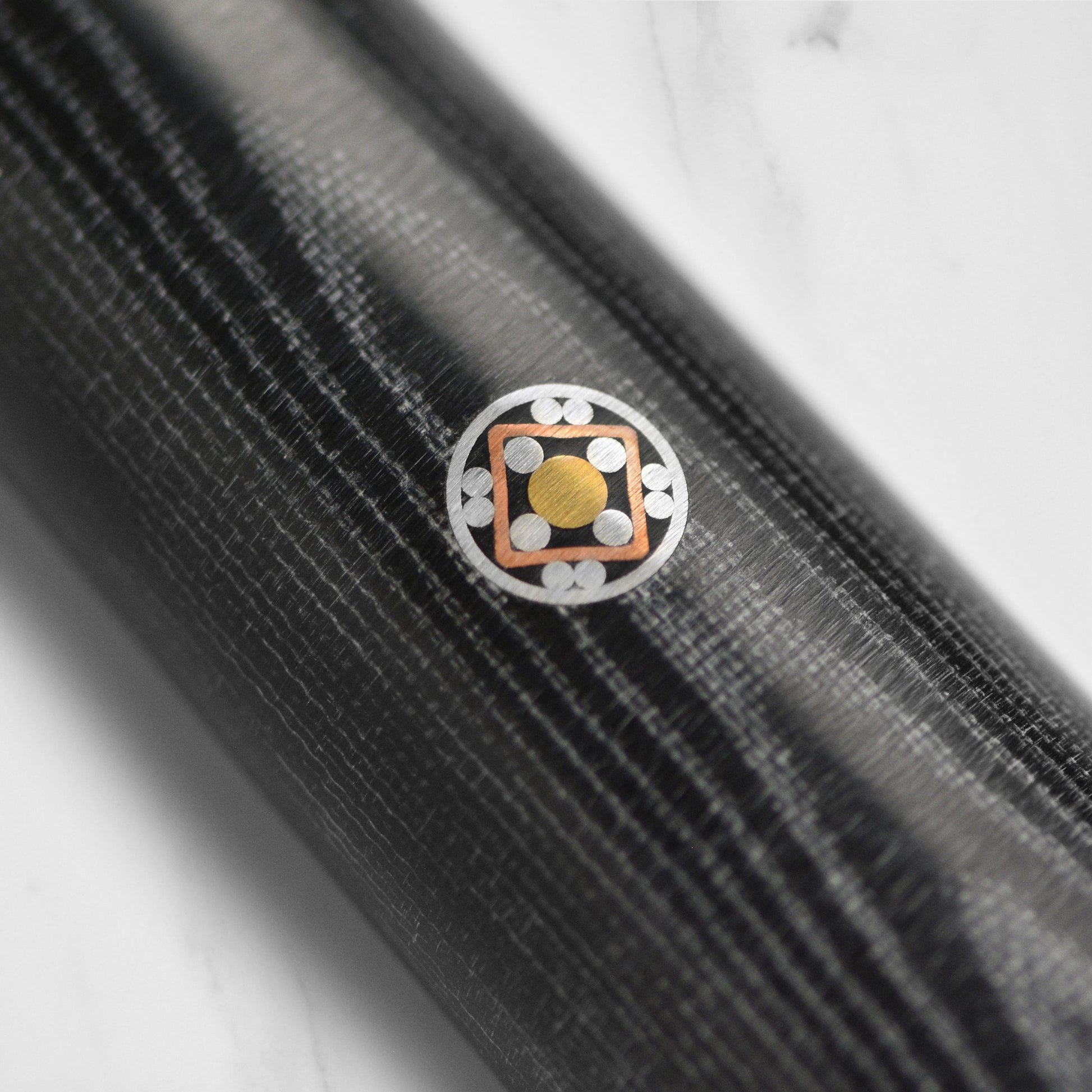 MIYABI strives for perfection with Kaizen - Japanese for "improvement" or "change for the better." This line of knives combines the best hardening technology with the artistry of traditional Japanese craftsmanship. The resilient core of VG10 super steel is protected by a stunning 64-layer flower Damascus pattern. The CRYODUR blades feature exceptional sharpness and durability thanks to their innovative, ice hardening treatment. Then, artisans hand-hone the blades with the historic Honbazuke method. This attention to detail translates into precision cutting for MIYABI Kaizen users. The blade is balanced by a refined D-shaped handle made of black linen Micarta. With a wood-like texture, the comfortable handle won't slip from your hand and acts as a moisture repellant. Handcrafted in Seki, Japan.